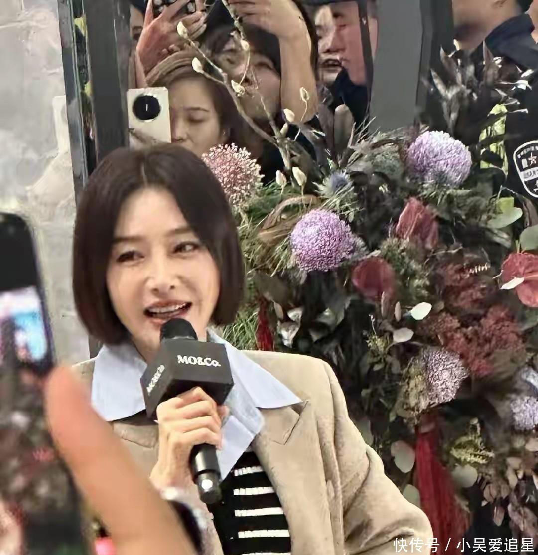 我挤到前排时,手机差点脱手——她站在那,皮肤亮得像刚剥壳的鸡蛋,40岁的人笑起来眼睛弯成月牙,眼角那道细纹都透着温柔,跟《延禧攻略》里的容音一样,让人盯着看一眼就移不开眼。粉丝喊她名字,她笑着挥手比心,声音软乎乎的,还特意抬头看了看天,对着镜头外的人喊:“今天降温,你们多穿点衣服啊。”说真的,我盯着她腿上那截白到发光的小腿,突然鼻子就酸了。现在的内娱到底怎么了?一会儿这个明星P图P到五官模糊,一会儿那个为了上镜脸瘦成锥子,40岁的秦岚往那一站,却让我想起小时候我妈给我缝书包带的样子——她总说“别追求花里胡哨,干净利落就好”,秦岚今天穿的风衣,配着基础款短裤和皮靴,愣是把“简单”穿出了高级感,这哪是穿搭技巧?明明是岁月沉淀出来的底气。